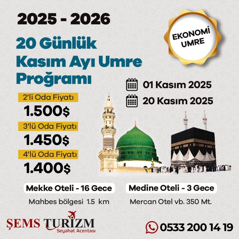 1. Ulaşım : Gidiş-dönüş uçak bileti umre turu paketine dahildir.
