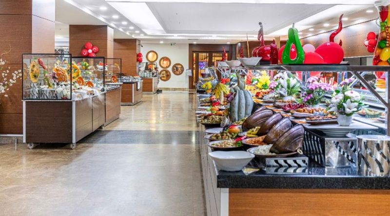 5 yıldız herşey dahil açık büfe otel konseptiyle gün boyu yiyecek ve içecek hizmetlerinden faydalanabilirsiniz. Keyifli bir tatilin ekonomik ve konforlu fırsatları için Suaytour her zaman hizmetinizdedir.